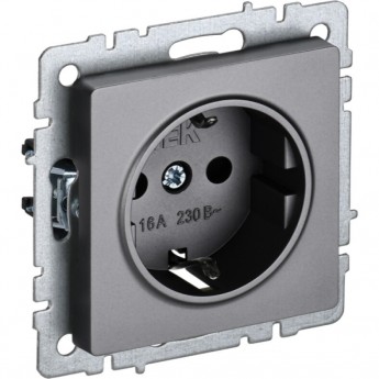 Розетка 1-местная с заземлением с защитными шторками 16А IEK BRITE РС14-1-0-БрГ графит - BR-R14-16-K53